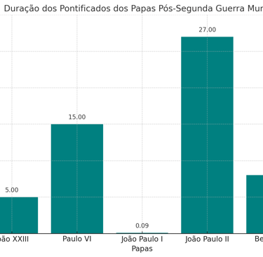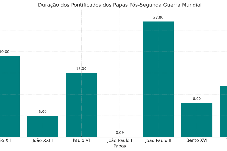Período dos reinos de cada papa por ano, depois da segunda guerra mundial: