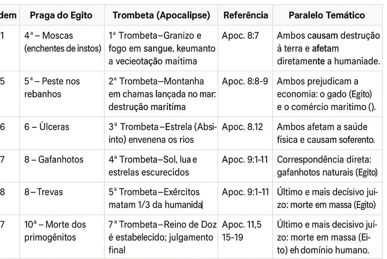 📜 Associação Cronológica – 7 Trombetas × Últimas 7 Pragas do Egito (4ª a 10ª)